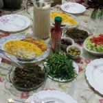 Lammfleisch mit Bohnen und Kräutern dazu reicht man Reis mit einer Kartoffelkruste!? Auch typisch für den Iran ist, dass zu jedem Essen Oliven, frische Kräuter, rohes Gemüse, Soßen und weitere Kleinigkeiten serviert werden.
