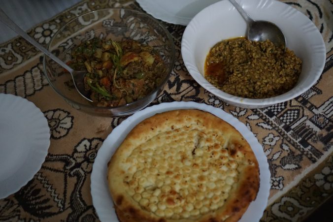 Zwiebel, Knoblauch, Kartoffeln und Ingwer schälen und in kleine Würfel schneiden.