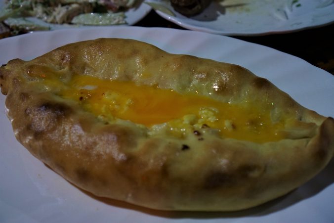 Mit einem stückchen Butter auf dem heißen Khachapuri wird der Geschmack verbessert und es wird nicht so schnell trocken, wenn man Reste erst am nächsten Tag essen möchte.